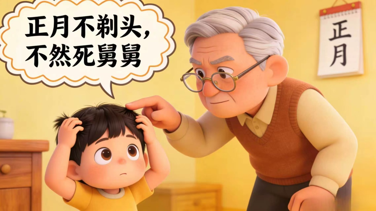 背後原理:清初漢人以“思舊”爲名正月不剃頭以懷念明朝,後諧音爲“死舅”避開政治風險;同時北方正月天冷,剃頭易感冒;用“死舅舅”嚇唬是爲了強化孩子對這條規矩的服從。
