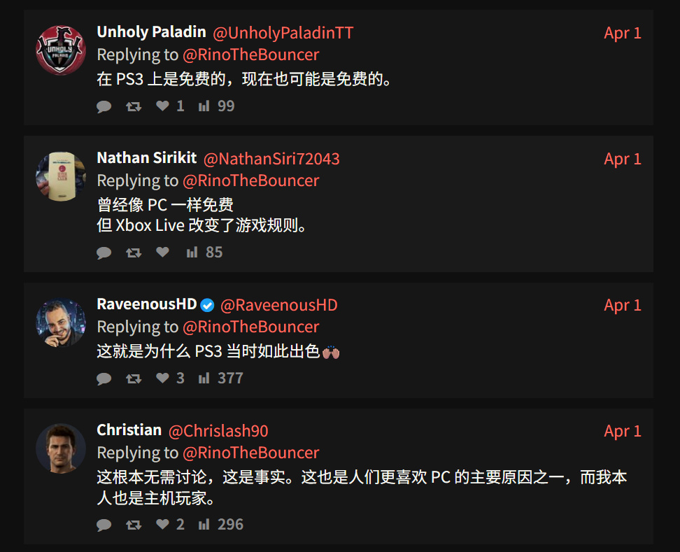也有人把主機與 PC 平臺對比,認爲平臺級聯機門檻仍是主機生態裏最容易引發不滿的一環。也有少數聲音認爲,會員如果能持續提供遊戲庫、折扣和附加權益,仍有一定接受空間。