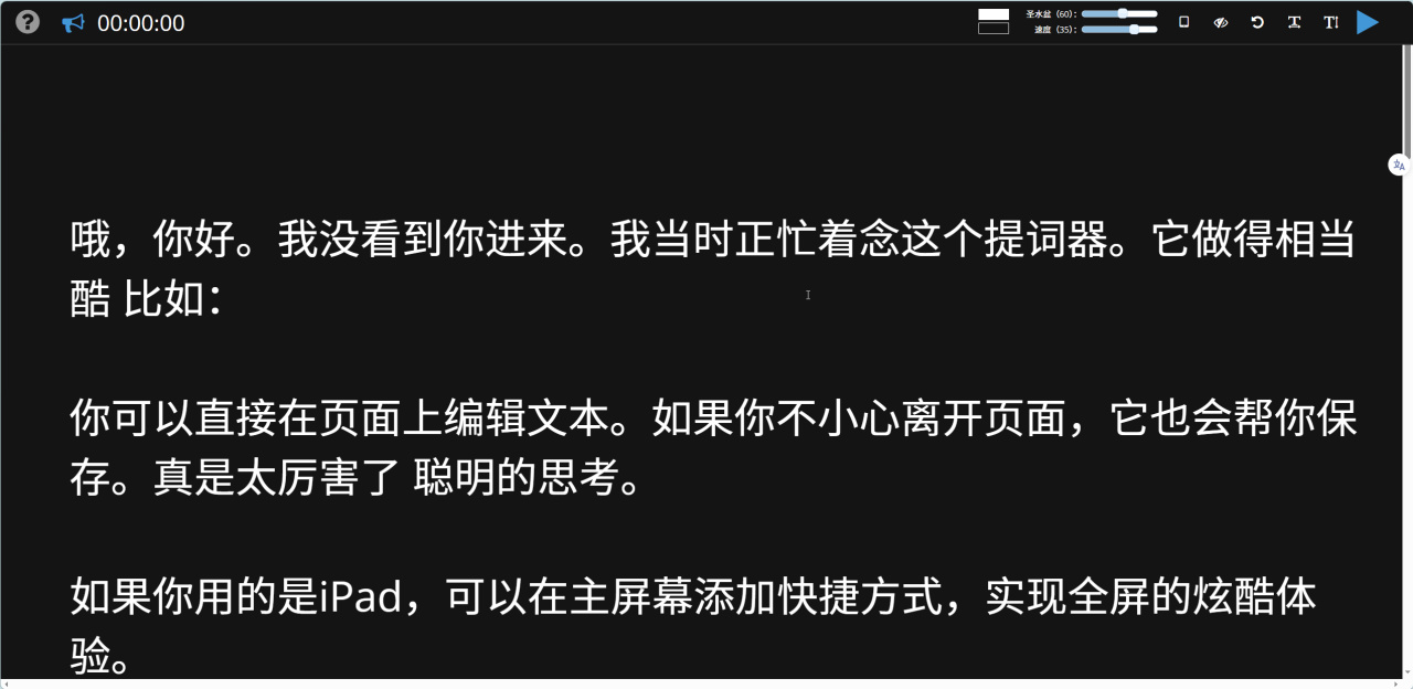 简洁实用的免费在线提词器,无需注册登录即可使用。支持自定义文本输入、字体大小、滚动速度与背景颜色,适配手机、电脑等多设备,可横屏竖屏切换。界面无广告、操作简单,适合短视频拍摄、演讲、直播等场景,帮助用户流畅念稿、提升表达效率。