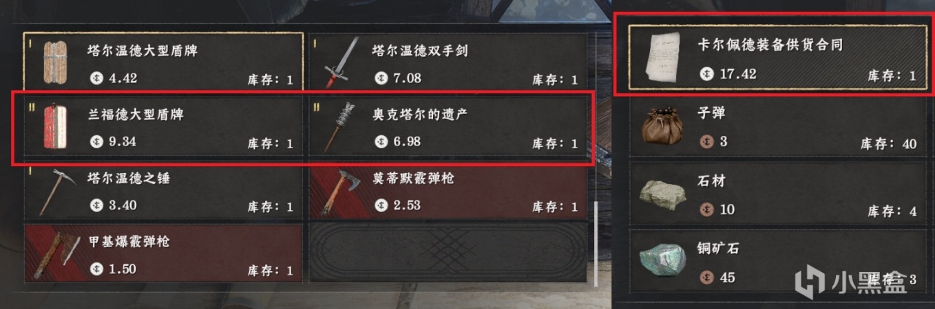 奖励:商店新增(供货合同、卡尔塔板金鞋子)