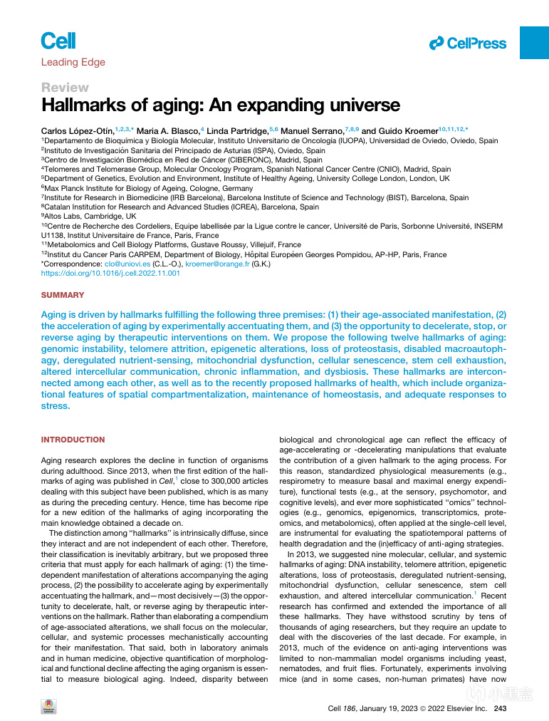 The Hallmarks of Aging