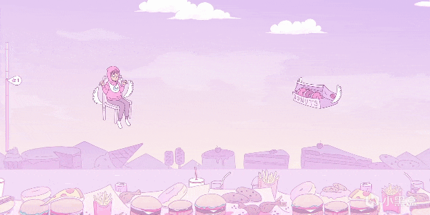 不单是颜色梦幻,游戏元素也真的跟从梦里跳出来一样会飞的披萨汉堡、刷爆的信用卡、VR射击游戏、压力巨大的上班场景......