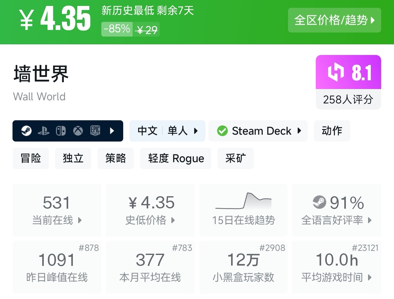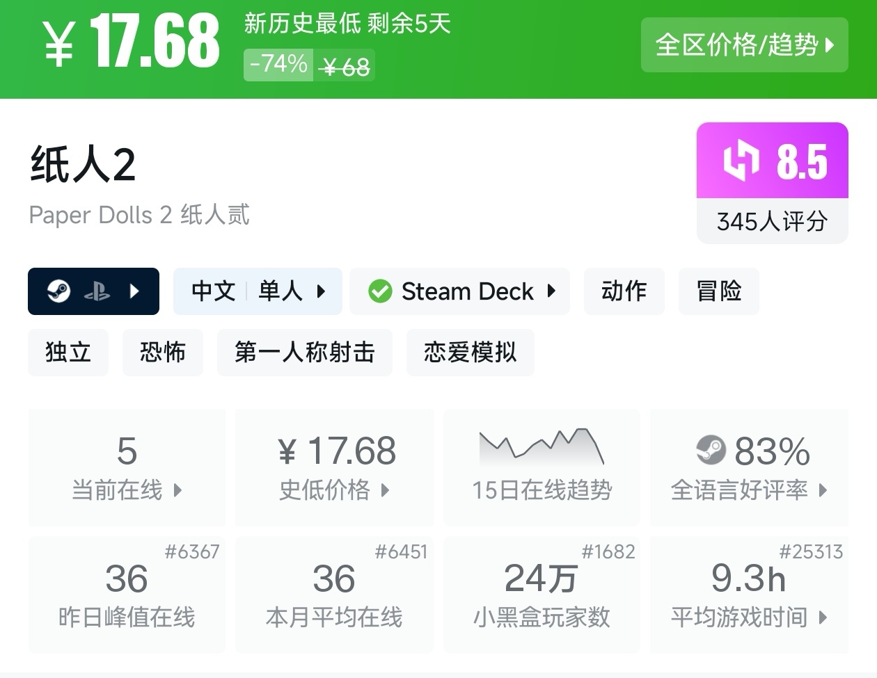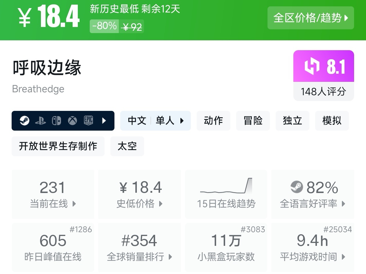 大家好,没错,又是我,你们的老朋友亦然,在最近,Steam又有很多游戏迎来了折扣,不仅有很多独立游戏,还有很多3A大作,其中就有很多新史低的游戏,其实新史低的游戏最不容易背刺,在很长一段时间里都不会更低,我将为各位进行一个汇总,希望我的汇总,能够帮助各位盒友挑选心仪的游戏。