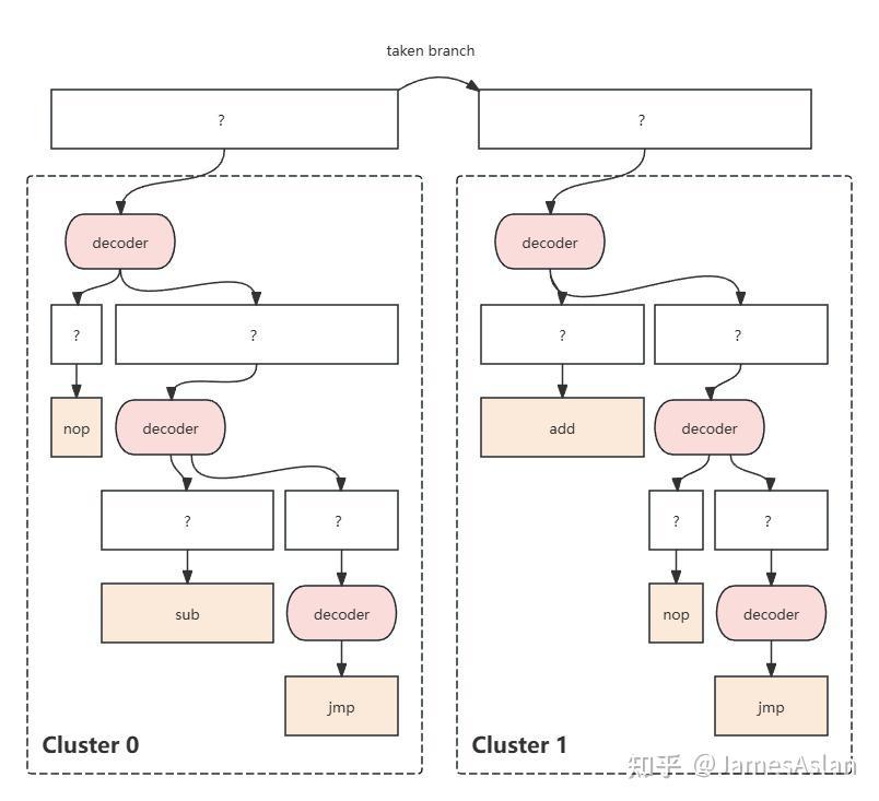 我们发现,taken branch帮我们斩断了译码簇之间的译码器间的相关链。尽管每个簇内部的译码器之间是部分串行的,但是相关链深度已然大幅缩减,组合爆炸的问题大幅缓解。不过我们显然不会到此满足,加料开始。