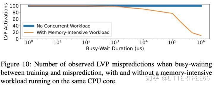 并且如图,测试了 LVP 预测状态是否会随时间丢失。结果表明,如果没有其他负载干扰,LVP 状态可持续长达 1 秒。但是强负载会导致 LVP 训练状态衰减。所以,LVP 预测状态较为持久,但会被 CPU 其他高强度任务冲刷掉。