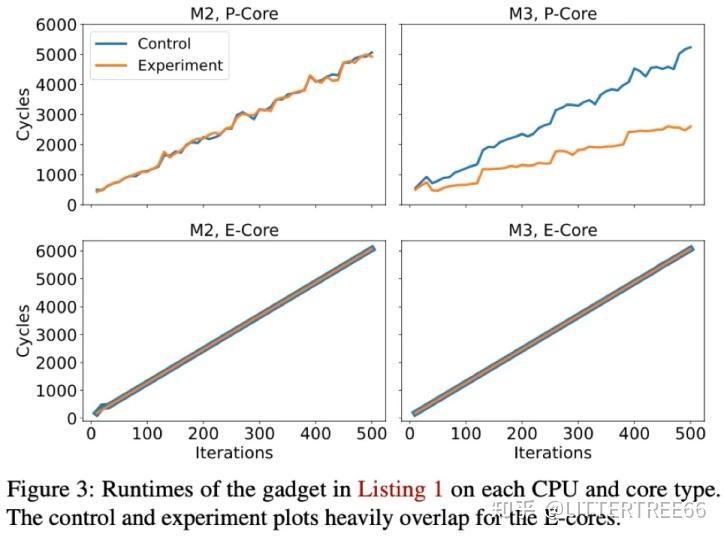 由这张图,我们可以发现,M2 P-core:没有 LVP,执行时间线性增长。M3 P-core:LVP 生效,执行时间显著减少(约 50%)。M2 E-core 和 M3 E-core:均未显示 LVP 迹象,执行时间与对照组相同。所以,我们可以获得结论,LVP 仅在 M3 的 P-core 上生效,而 E-core 不包含 LVP 机制。而M2 处理器不具备 LVP,意味着该优化是 M3 及更高代芯片的新特性。