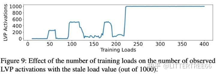(1)训练数据的收集:LVP 仅对固定加载值(constant loads)进行训练,而不会训练步长递增的加载值(striding values),表明 LVP 采用了一种简单但安全的模式匹配机制。实验表明大约 250 次相同的加载值执行后,LVP 开始提供可靠预测。在此过程中,每 60 次训练 LVP 的预测可靠性会增加,说明训练数据可能使用了一个 基于计数器的置信度模型(confidence counter):