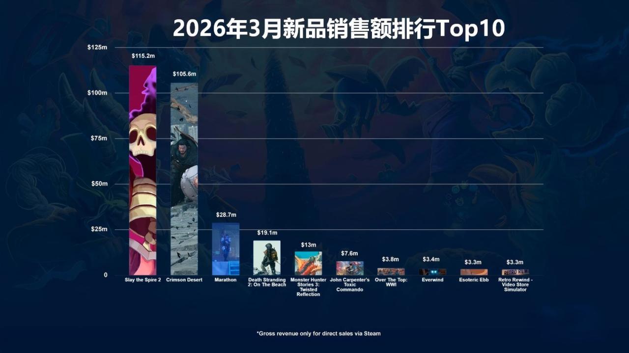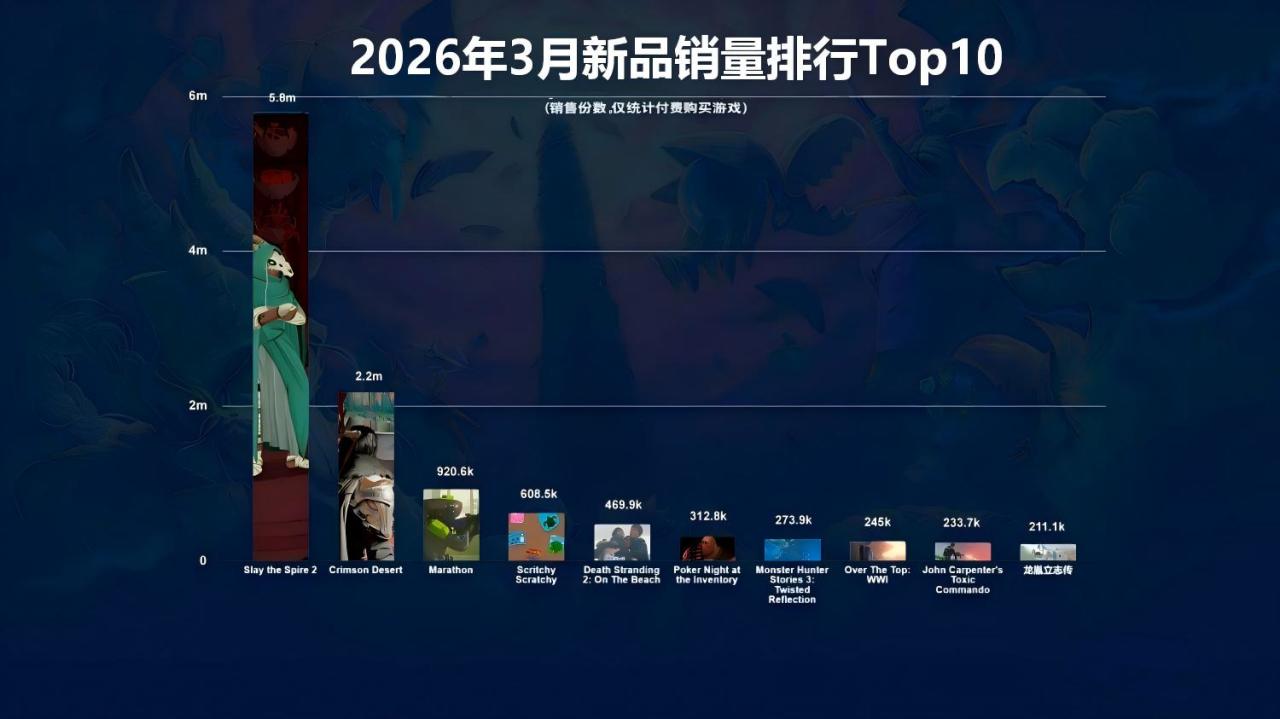 注意都僅僅統計26年3月新發售遊戲,銷量排名不包括免費下載遊戲,銷售額排名不包括內購金額。