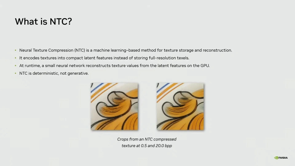 近日,在2026年GDC圖形處理器技術大會上,英偉達正式推出全新的神經紋理壓縮(NTC)技術,憑藉AI驅動的壓縮能力,實現遊戲顯存佔用最高85%的降幅,且能保障畫面質量無損,這一突破爲困擾行業已久的顯存瓶頸問題提供了全新解決方案,也讓高分辨率紋理遊戲的普及迎來新契機。