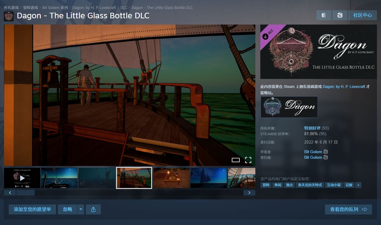 在Steam平台斩获95%好评如潮的佳作《Dagon》是一封面向克苏鲁题材爱好者的情书。