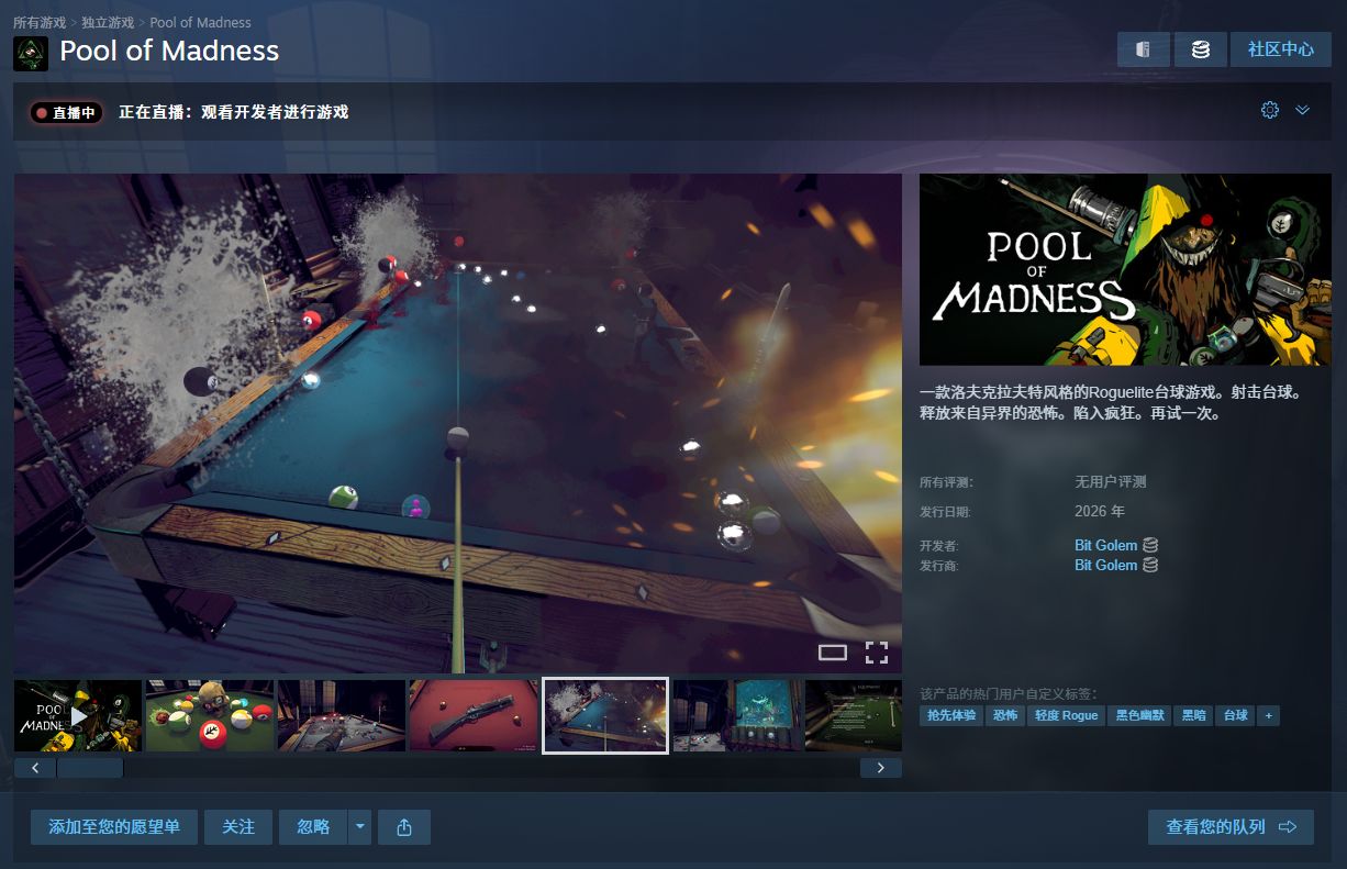 那么下一站呢?制作组正在开发新作《Pool of Madness》,同样也是洛夫克拉夫特风格,感兴趣可以加个愿望单。