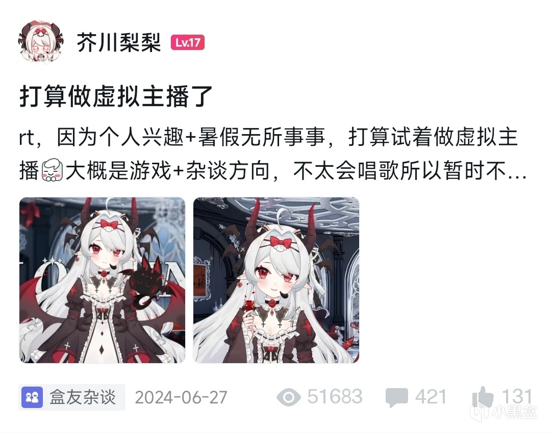 就這樣,抱着混雜着勝負欲的複雜情緒——我破罐子破摔,想到虛擬主播很容易被開盒——加上對互聯網之海的嚮往,我萌生出了做虛擬主播的念頭。