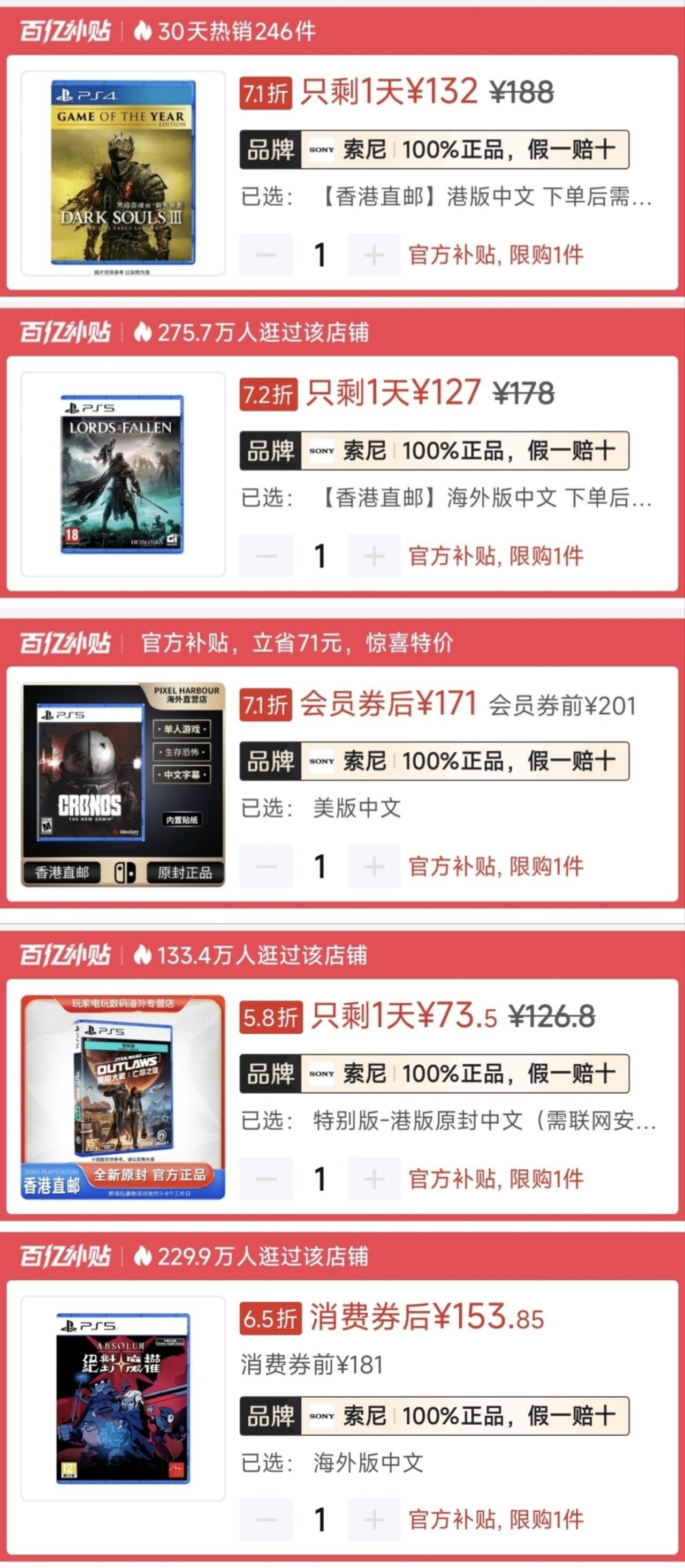 ③簽到75折和福袋7折-50券不是人人都有不記入史低。