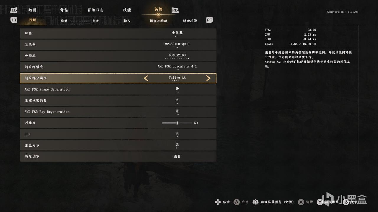 4K最好的体验仍是选择RX 9070 XT,搭配FSR之后就能完美胜任4K60,值得一提的是,游戏支持最新FSR 4.1超采样技术,比4.0进一步优化了动态画面效果,对于持有RX 9000系列显卡的朋友来说无疑是福音。