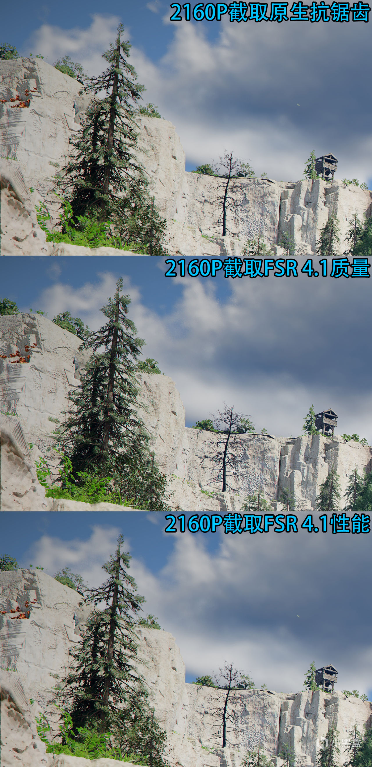 虽然设置里没有明确指出,但《红色沙漠》的原生抗锯齿极大概率就是TAA,TAA的短板特性就是鬼影BUG现象频发,质感模糊尤其是处理树枝这类复杂物体,可见上述FSR 4.1质量档画面明显增强,不过追求效能的话,也可以使用FSR 4.1性能档,虽然其画面和TAA半斤八两,但是帧率提升幅度是相当大的。