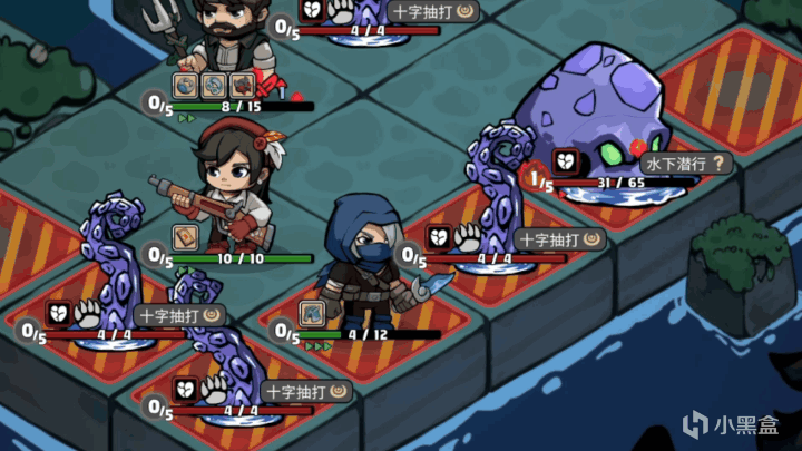 每一位角色拥有独立的行动条,可以让你在“棋盘”移动,其用途便是“躲避敌人的攻击”,“卡住敌人占位保护残血队员”,”和队友打出组合攻击“