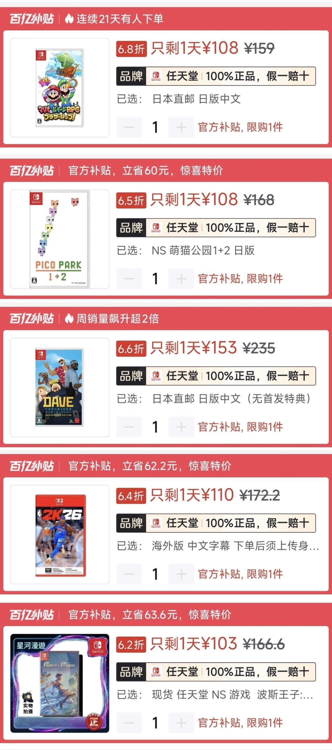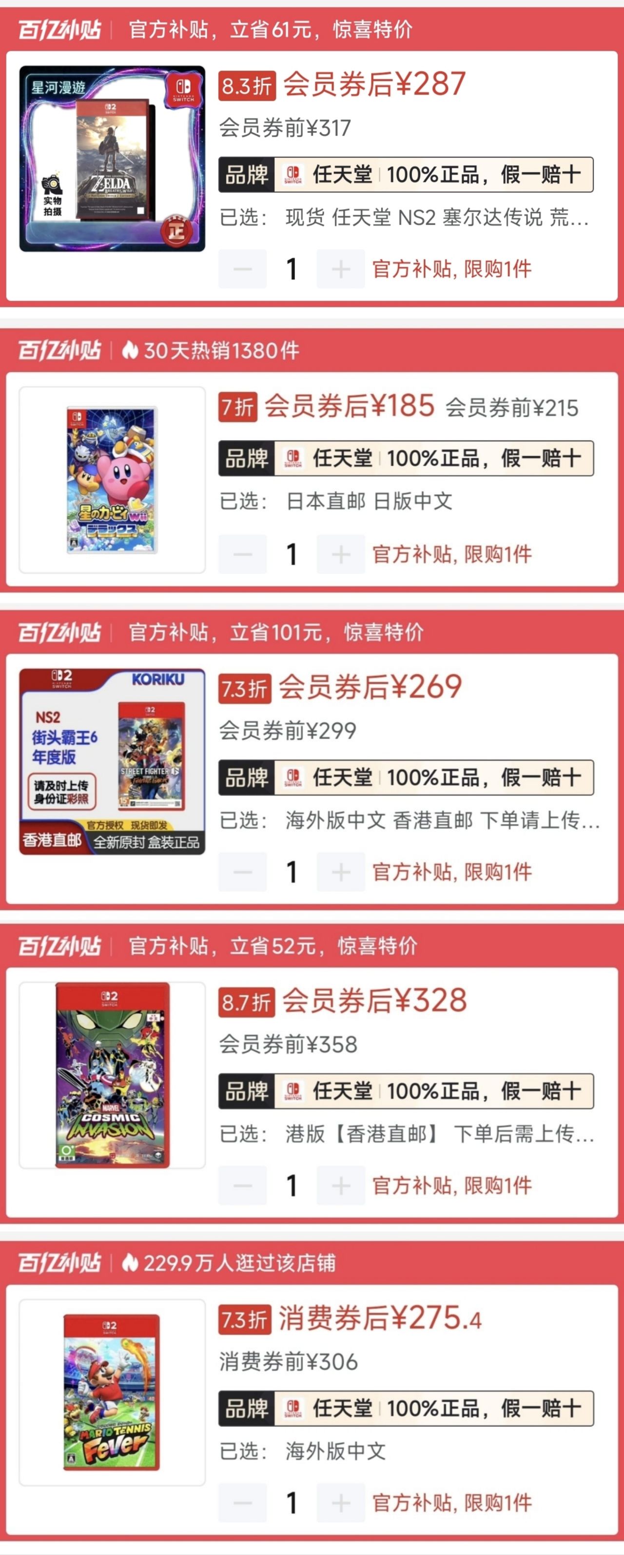 1.《马里奥派对空前盛会》ns2版🇯🇵264(-50)|史低254