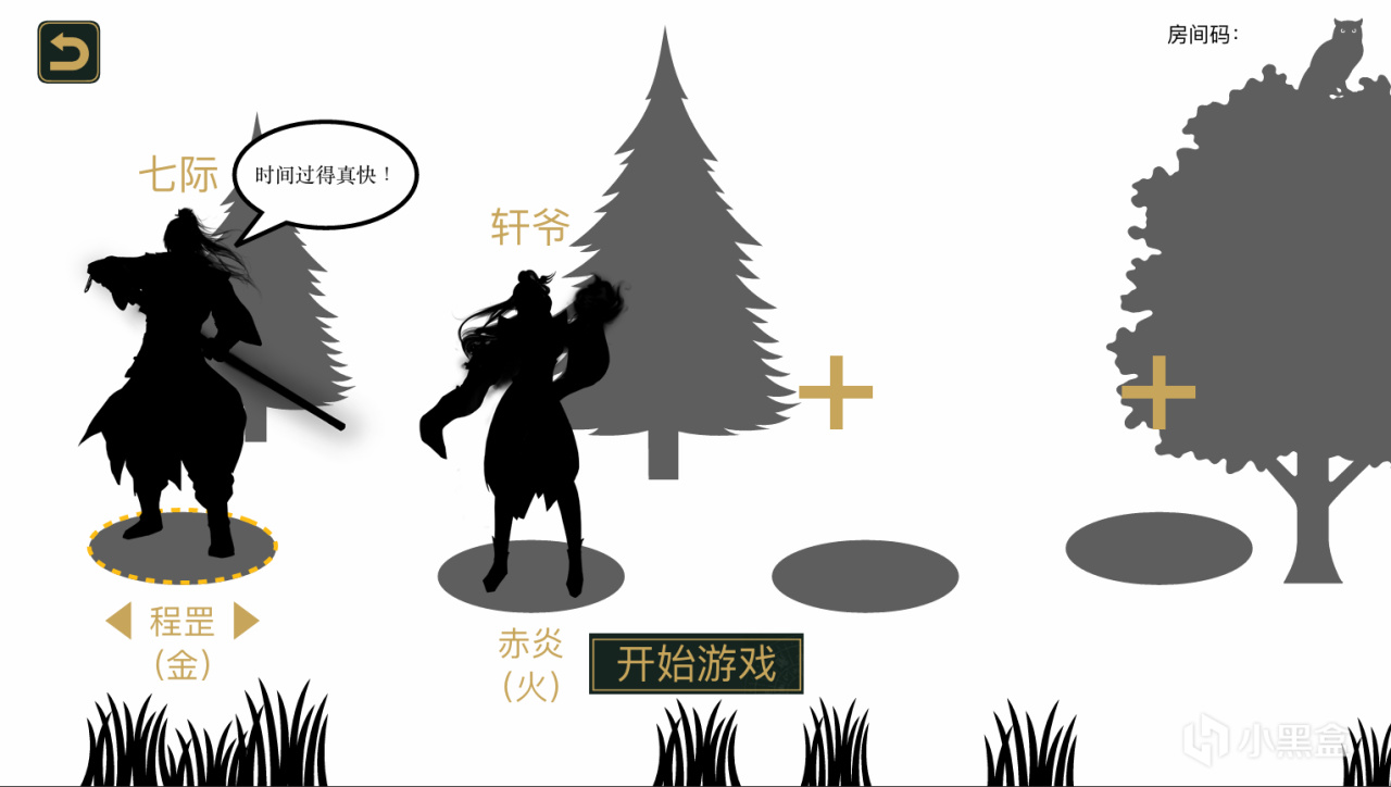 角色選擇場景:最早設定是這樣的,角色在森林裏面站着,角色選定後還會說出一句自己的口頭禪。
