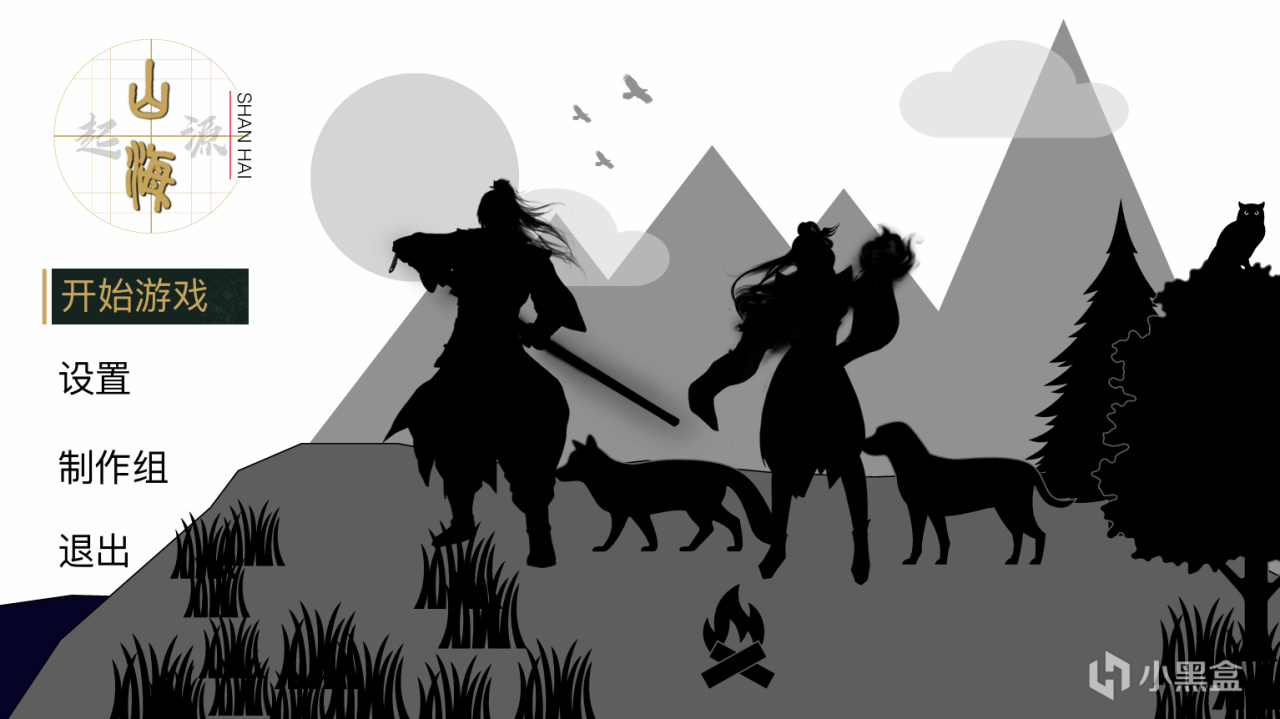 啓動頁面:最早設定是站在山頂上,前面一堆篝火,後面是羣山。前景有角色和異獸在。(最初設計是用的Keynote,就是找各種元素把想象中的場景拼出來,方便大家理解。)