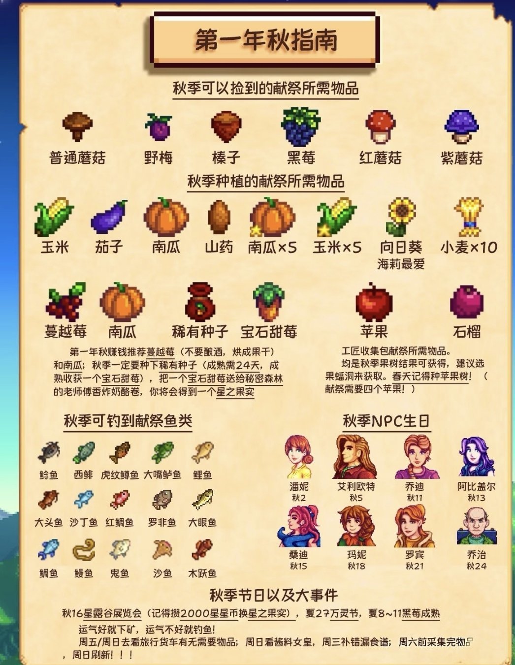 星露谷四季备忘录 2026-04-06 主机游戏 担心要做的事错过季节?有需要的老乡们可以自取以上内容来自网上若是侵权请告知删除若内容有误欢迎老乡们在评论区指出 更多游戏资讯请关注:电玩帮游戏资讯专区 电玩帮图文攻略 www.vgover.com