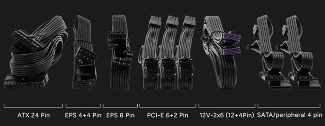 這顆電源在模組線上也給到了不錯的設計。以及搭配的線材也相當齊全,PCI e 8Pin有三根,也單獨給了12V-2×6的