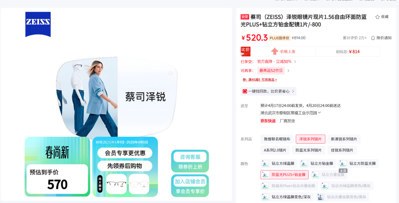 就跟眼鏡類似,蔡司的視特耐透光率爲98.5%,但高端產品鑽立方可以達到99.8%。雖然看着區別只有1.3%,卻能區分出高端和入門的區別,而且這多出的1.3%確實有更好的效果。