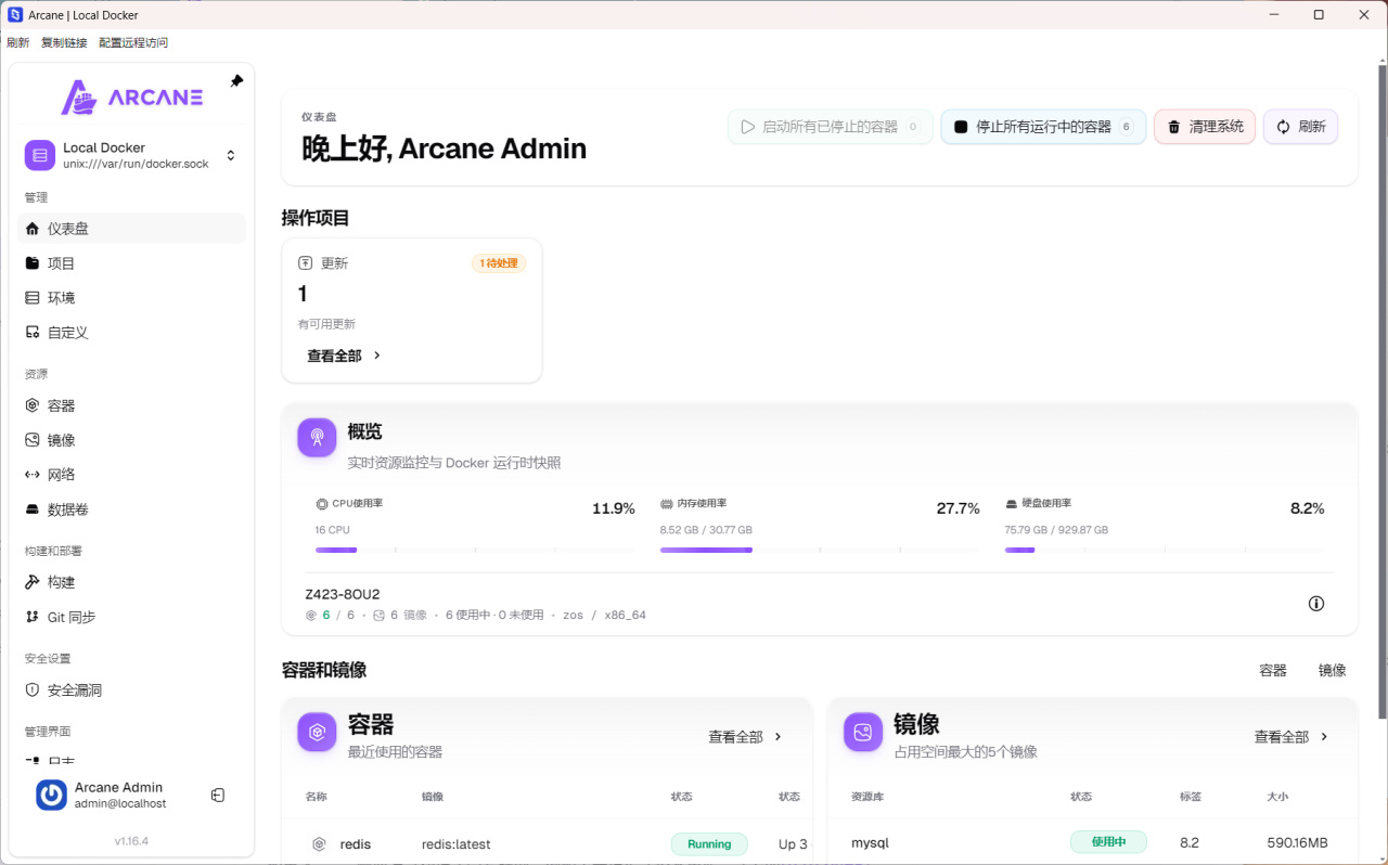 目前體驗最佳的Docker管理工具,不僅項目界面好看功能也非常齊全。加上還有Arcane-cli的支持,用來配合現在的Claude Code以及OpenClaw這類工具,使用體驗非常不錯。如果你已經在用OpenClaw(龍蝦),同時想要集中管理容器,那麼這個項目其實是非常不錯的選擇。
