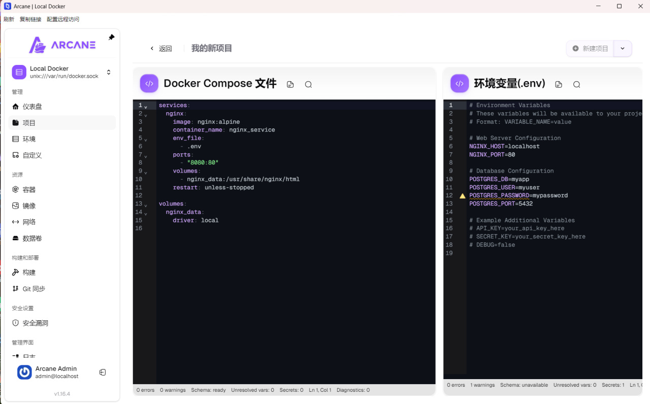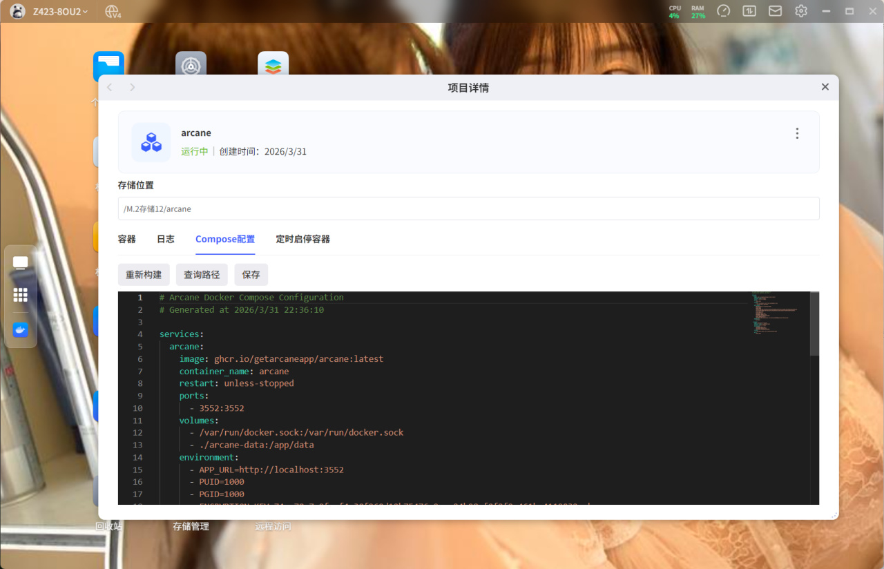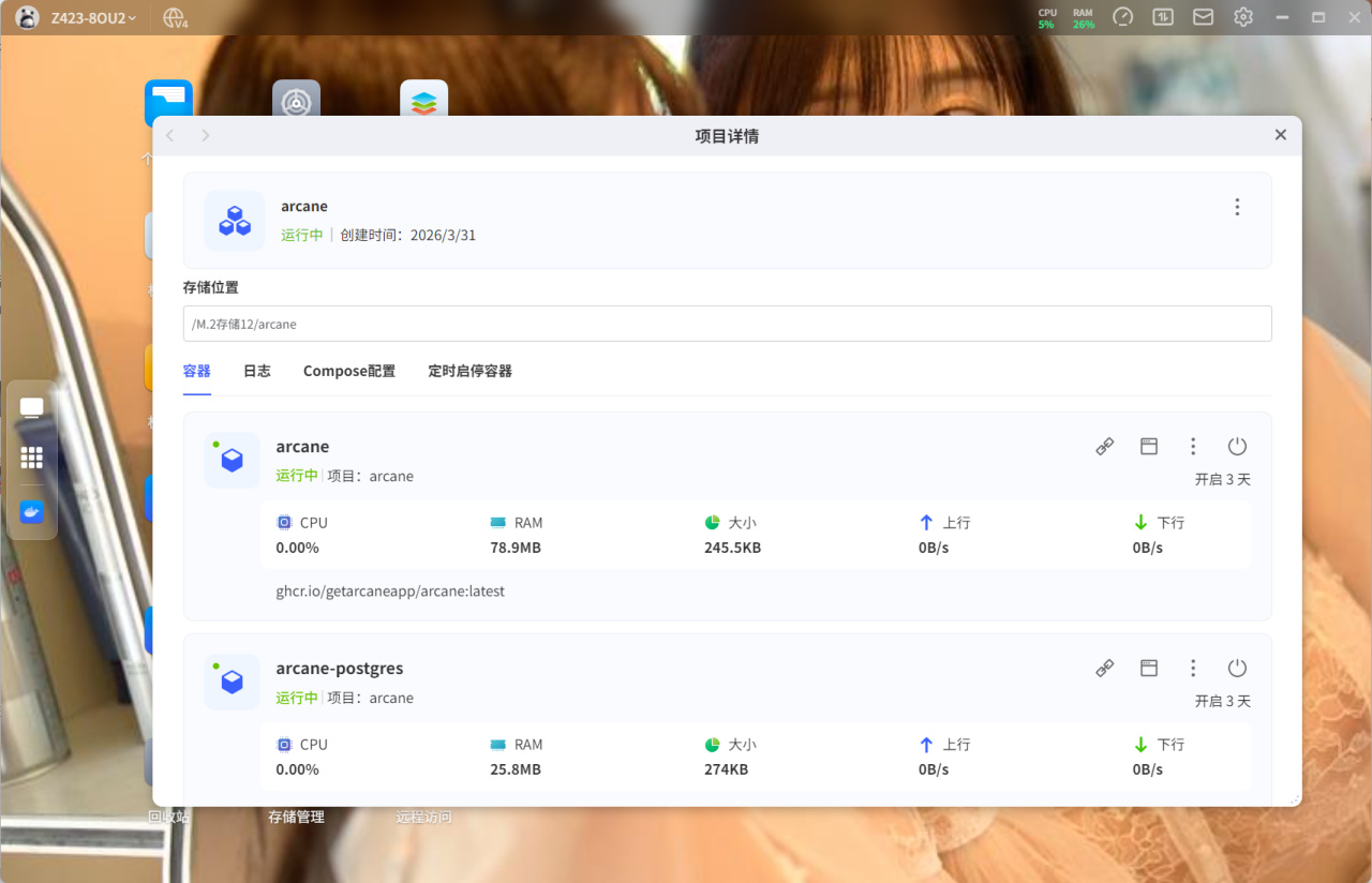 生成compose文件之後直接複製到NAS中啓動就行。項目默認登錄賬號爲arcane,密碼爲arcane-admin