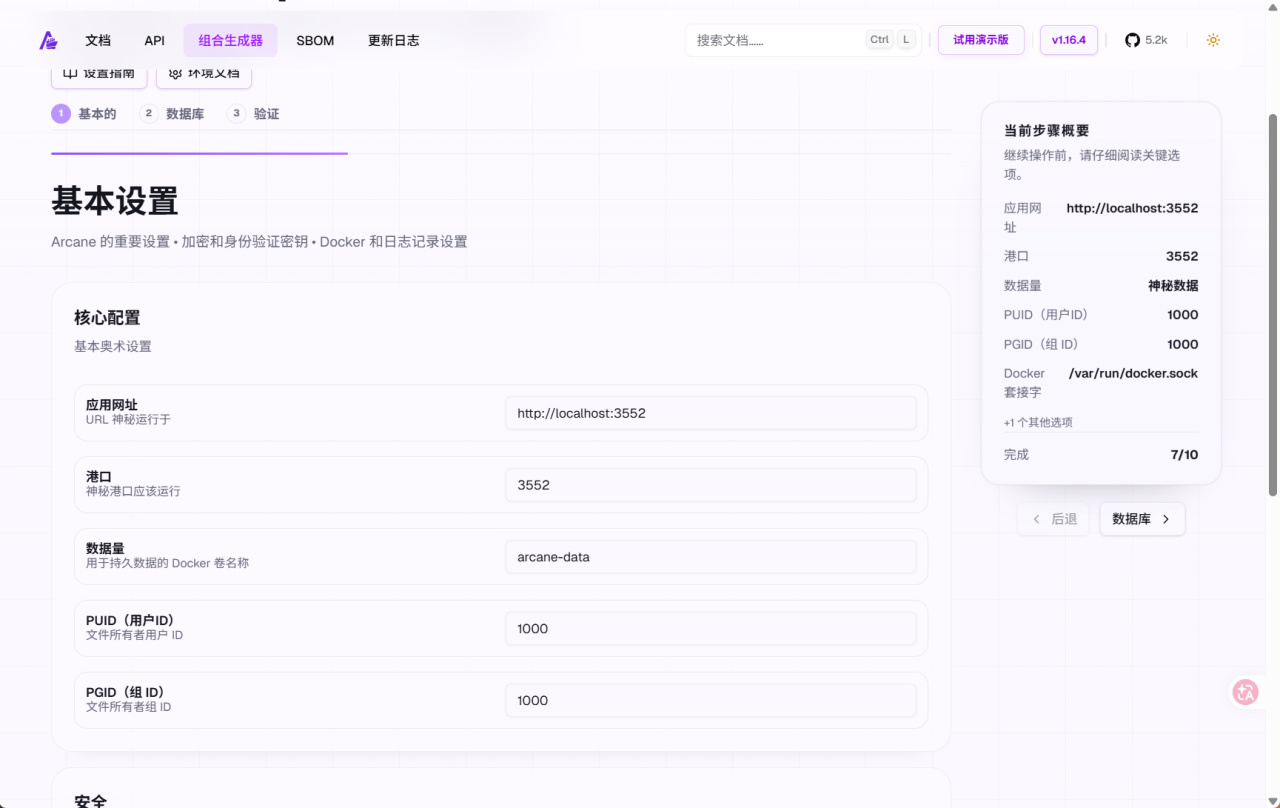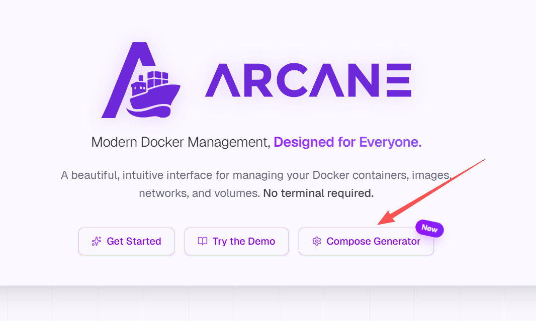 Arcane的部署是我見過最貼心的。官網提供了compose構建器,通過它一步步設置NAS變量就能獲得compose代碼。