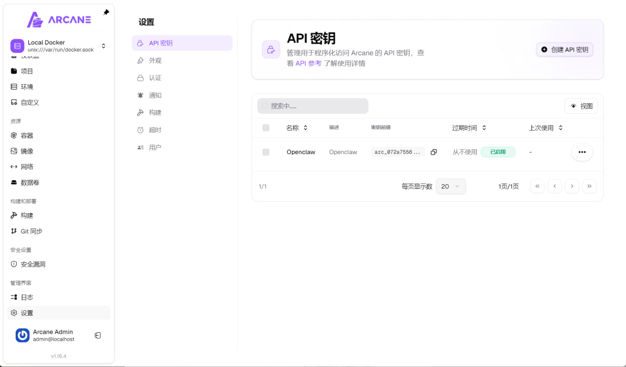另外在設置界面中,Arcane支持API,甚至還有自己的Arcane-cli。這意味着我們可以通過AI來管理控制Arcane