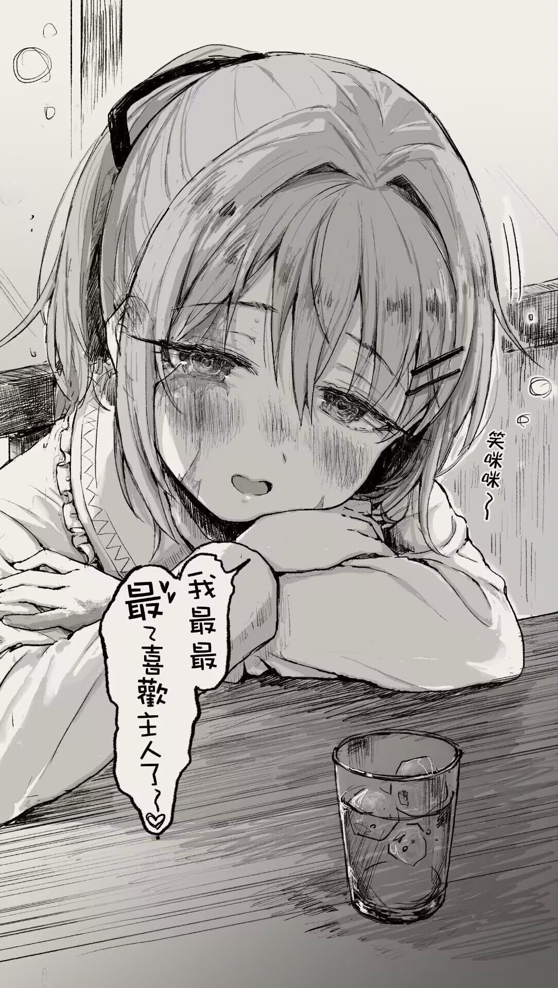 她趴在桌子上,臉頰紅得像熟透的草莓,嘴裏還含糊不清地哼着什麼。旁邊的白髮女孩已經徹底睡死過去,只有奈妃還勉強撐着眼皮,醉醺醺地笑着。