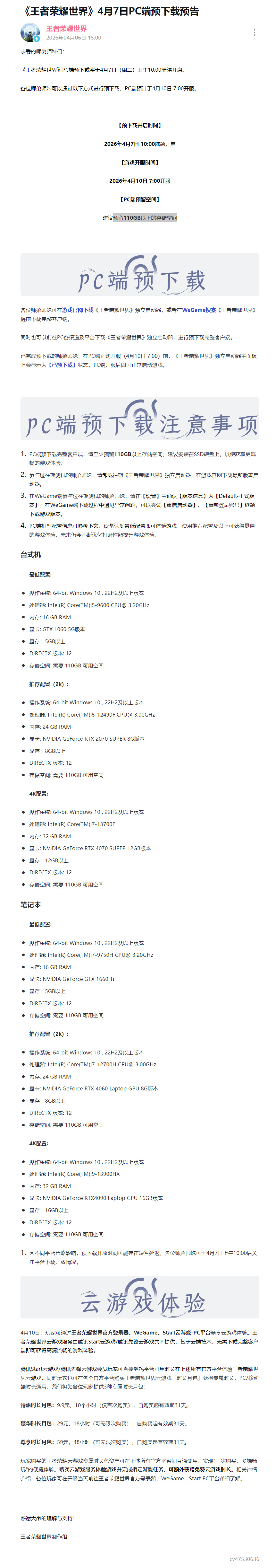 《王者榮耀:世界》PC端將於4月7日上午10點開放預載!