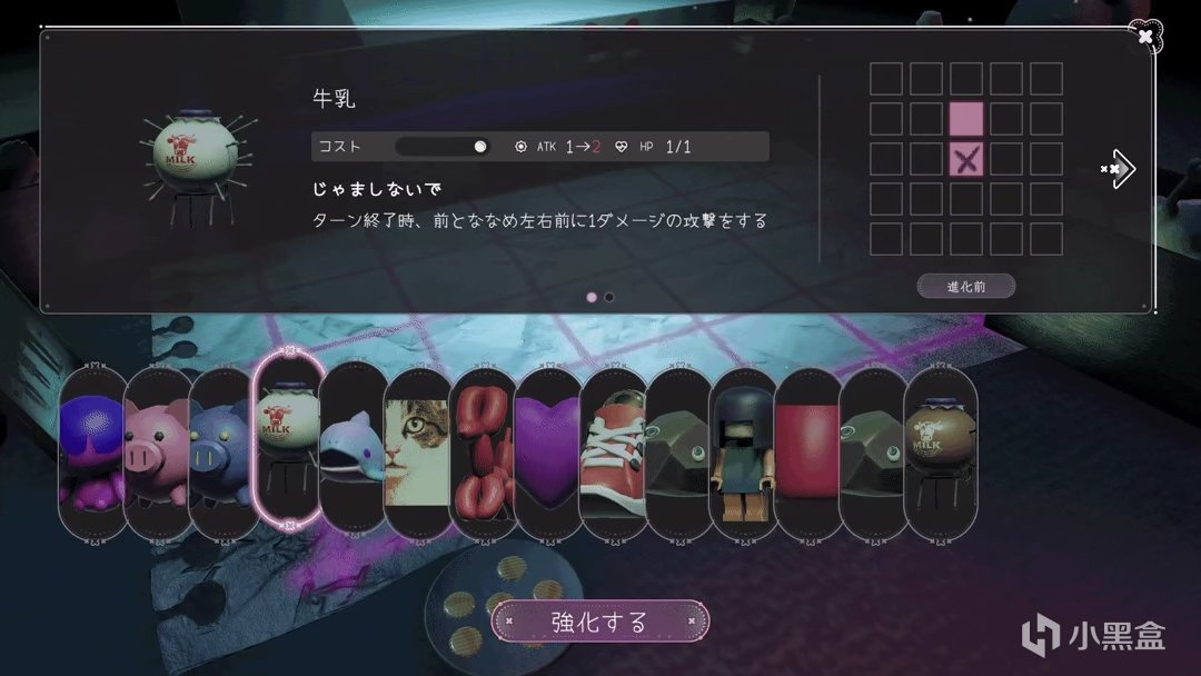 例如,“牛奶”技能會在回合結束時自動攻擊正前方的敵人。 但必須注意棋盤佈局,因爲它也可能會攻擊到你自己的玩具。