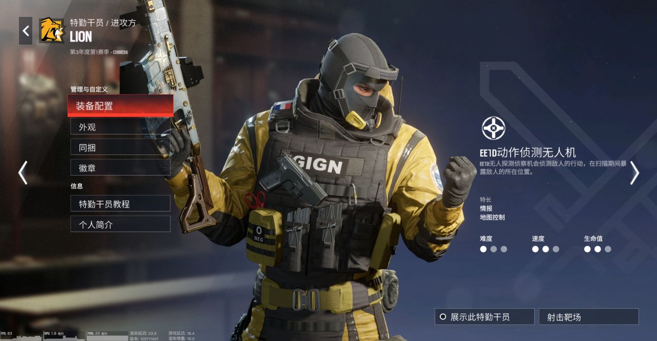 最簡單的信息位之一,技能是進行全圖掃描,標記在掃描期間移動的所有敵方幹員。防守方會收到偵查提示,並有1.5秒的準備時間。