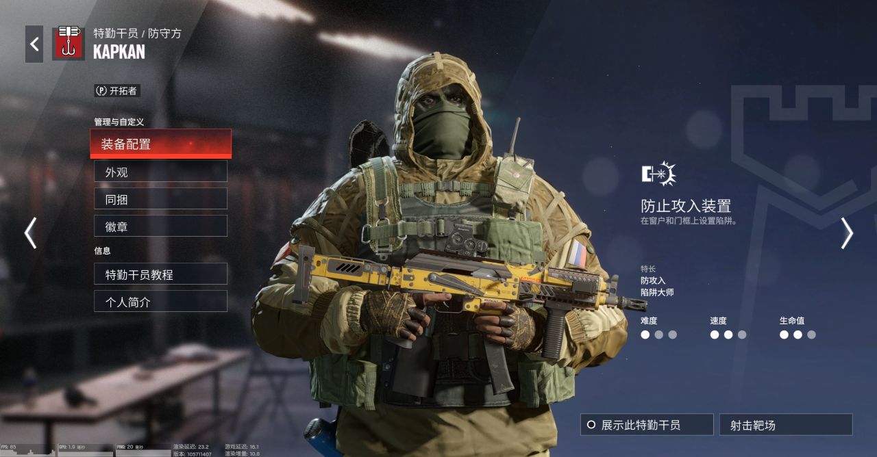 詭雷陷阱打殘局尤其強,因爲對方往往會把注意力放在找人身上,這也導致Kapkan經常在本人死之後還能拿到人頭。