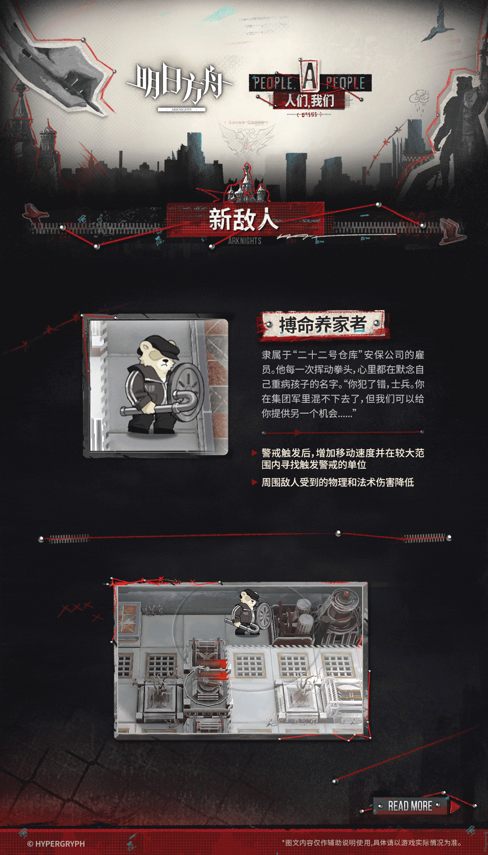 博命养家者,警戒触发后,增加移动速度并在较大范围内寻找触发警戒的单位。周围敌人受到的物理和法术伤害降低