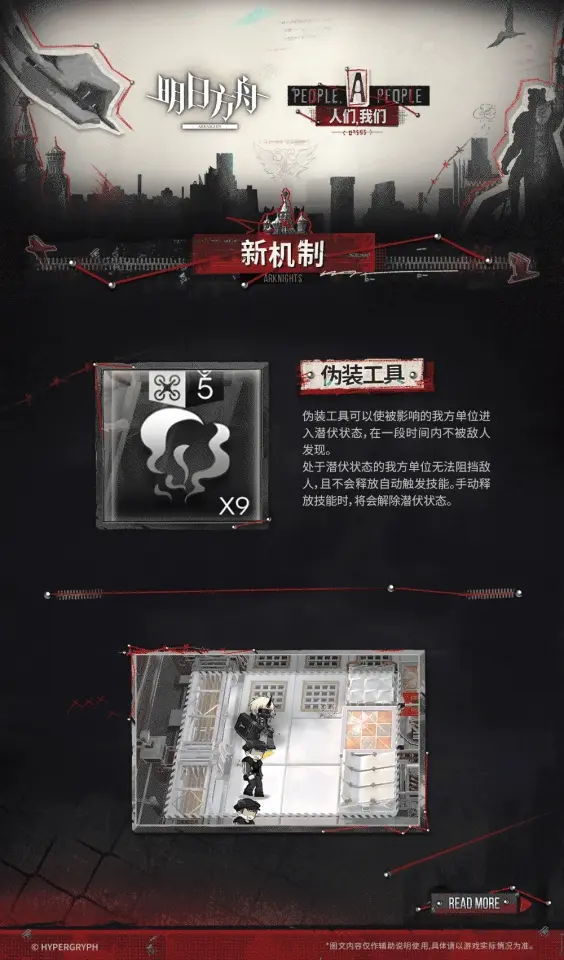 简单的说可以让我方潜伏不被敌人发现,但是无法阻挡敌人,且手动/自动技能都不会开,手动开技能解除潜伏。 伪装工具。伪装工具可以使被影响的我方单位进入潜伏状态,在一段时间内不被敌人发现。处于潜伏状态的我方单位无法阻挡敌人,且不会释放自动触发技能。手动释放技能时,将会解除潜伏状态