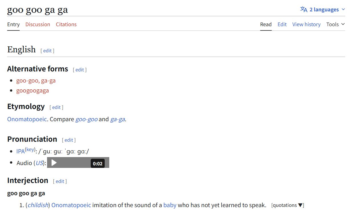 查查词典就会发现,咕咕嘎嘎是拟声词,代表婴儿还没学会说话的声音。