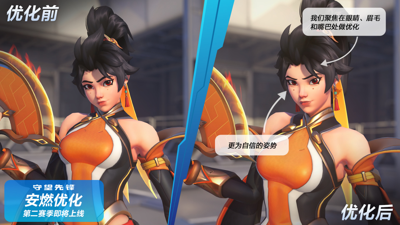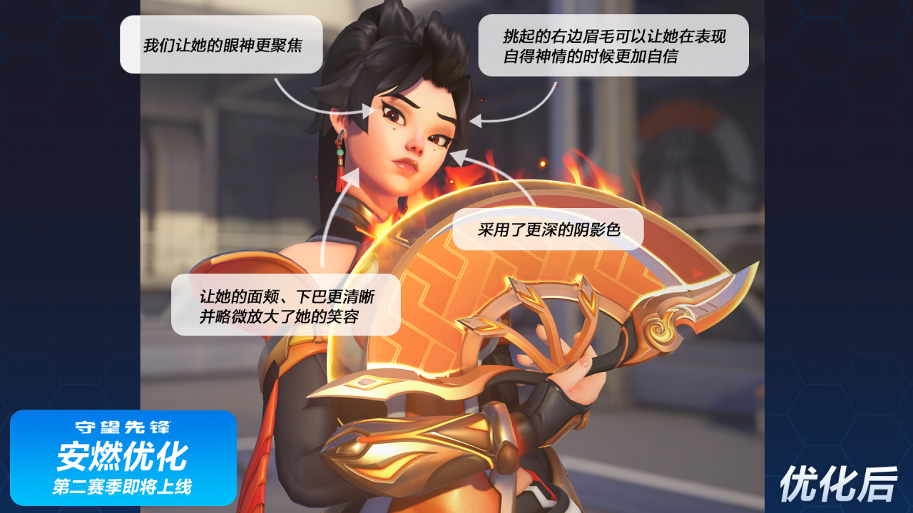 《守望先锋》“安燃”外观优化现已公开!将于第二赛季正式实装。官方也在此向玩家说明团队在本次视觉细节优化的创作初衷。