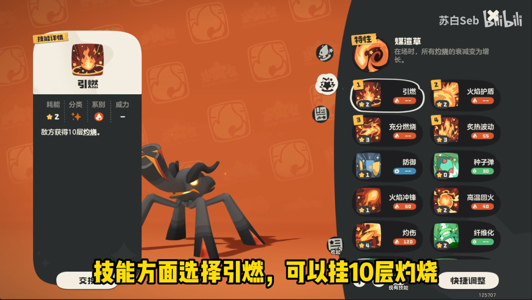 技能方面選擇引燃。
