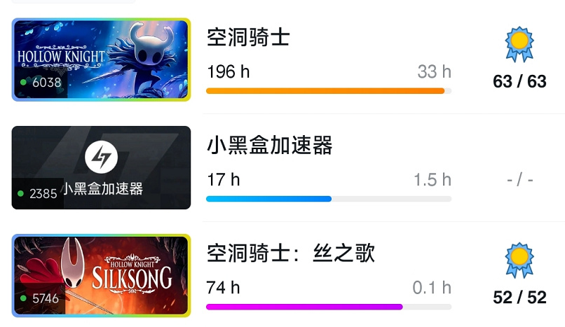 说自己打不过小虫子,骂《空洞骑士》不好玩的,把两作都打了全成就。