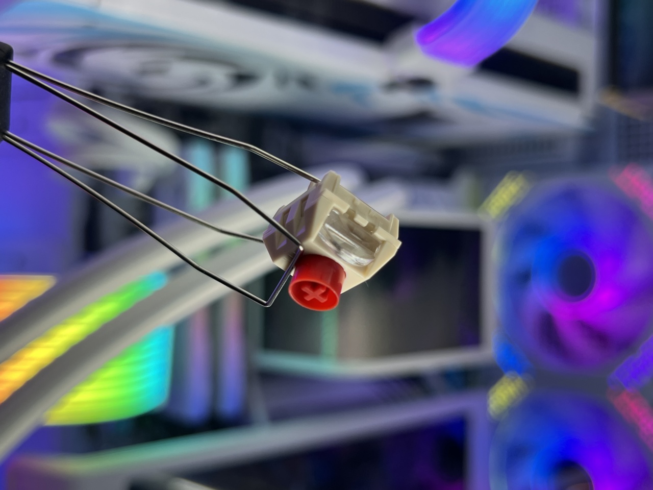 細看軸體,軸心有凱華的BOX防塵壁結構,弧形導光柱,整體還是很好看的一款軸體。