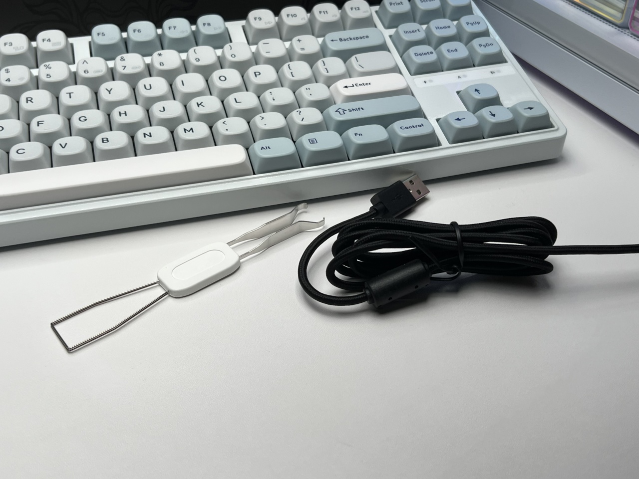 配件倒是沒啥好說的,線材和拔軸拔鍵器,無增補軸體,需要知道的是青龍87 Ultra同樣支持有線/2.4G雙8K回報率,1.5m的編織線材上配有抗干擾磁環,防止信號傳輸干擾。