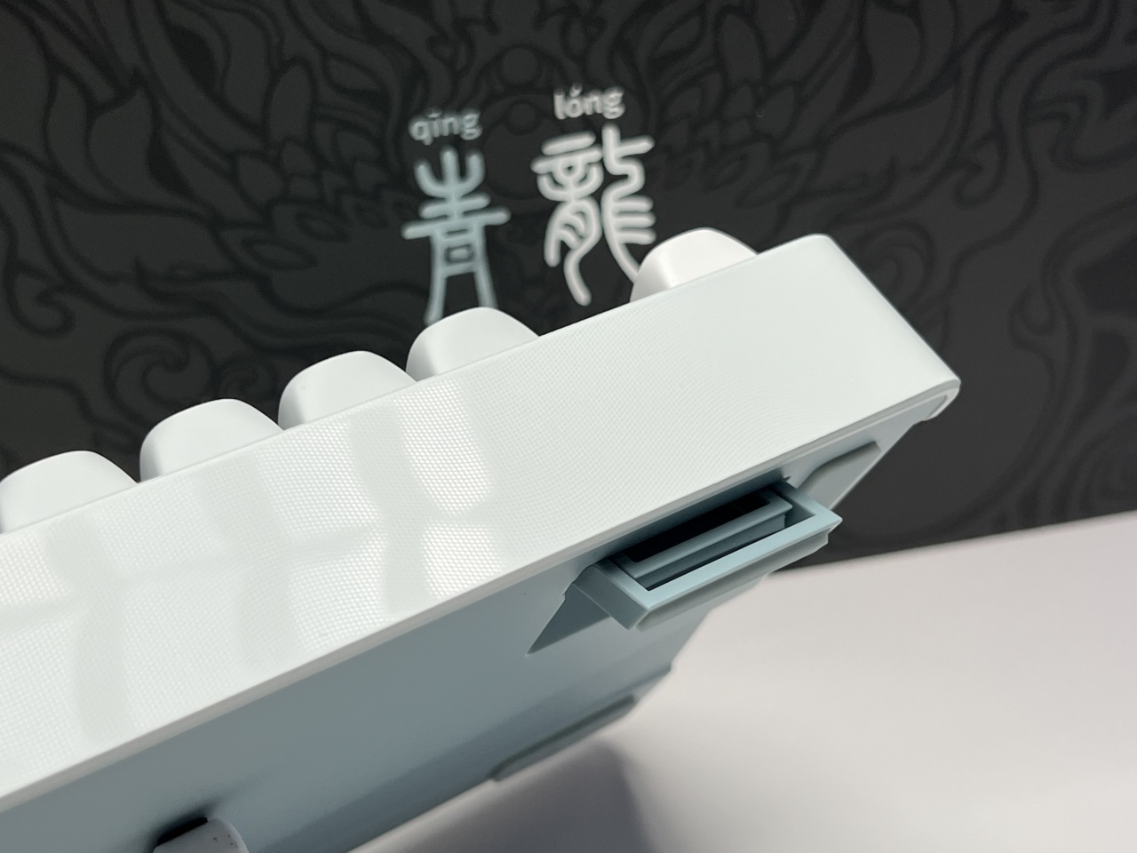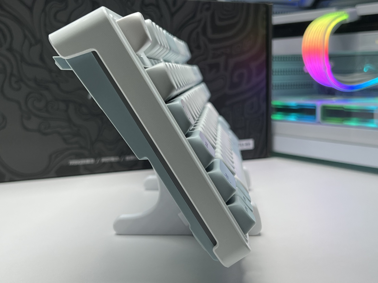 五塊鍵盤底殼同色的大腳墊,能給到鍵盤在激烈操作時不錯的穩定性;兩段式腳撐搭配18.8mm左右的前高能給到手腕很舒適的碼字角度。