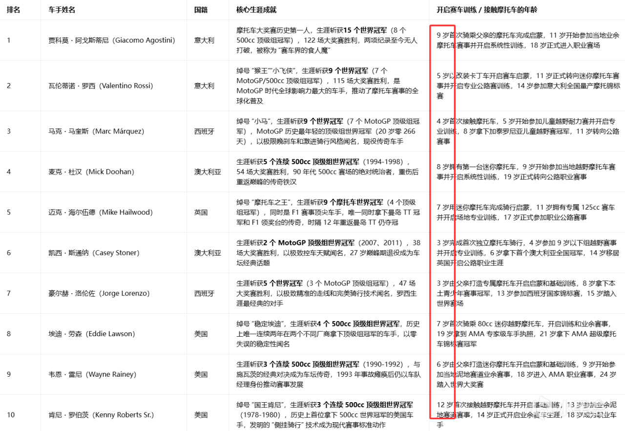 這個規律已經被無數場比賽驗證過了,最核心的問題就是車手一旦年齡過了黃金髮育期,人體相關的神經通路發育就結束了。所以這還真不是“職場年齡歧視”,純粹就是生理限制。也正因如此車隊最初接納他的崗位是“特技車手兼機械師”,我只能說車隊爲了不打擊這個年輕人的熱情,也算是良苦用心了。