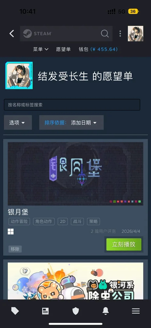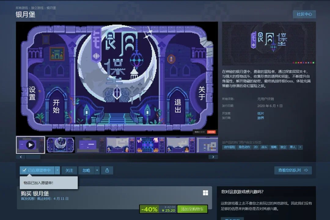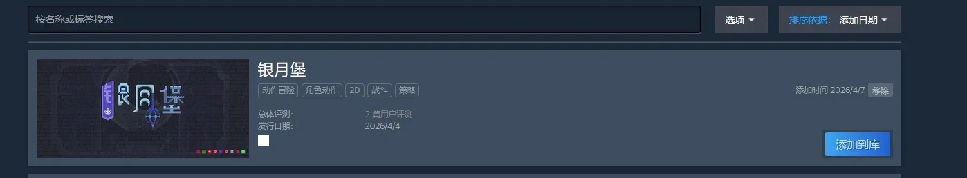 入库流程:搜索银月堡,加入愿望单可以免费入库,官方忘记把免费入库sub删掉