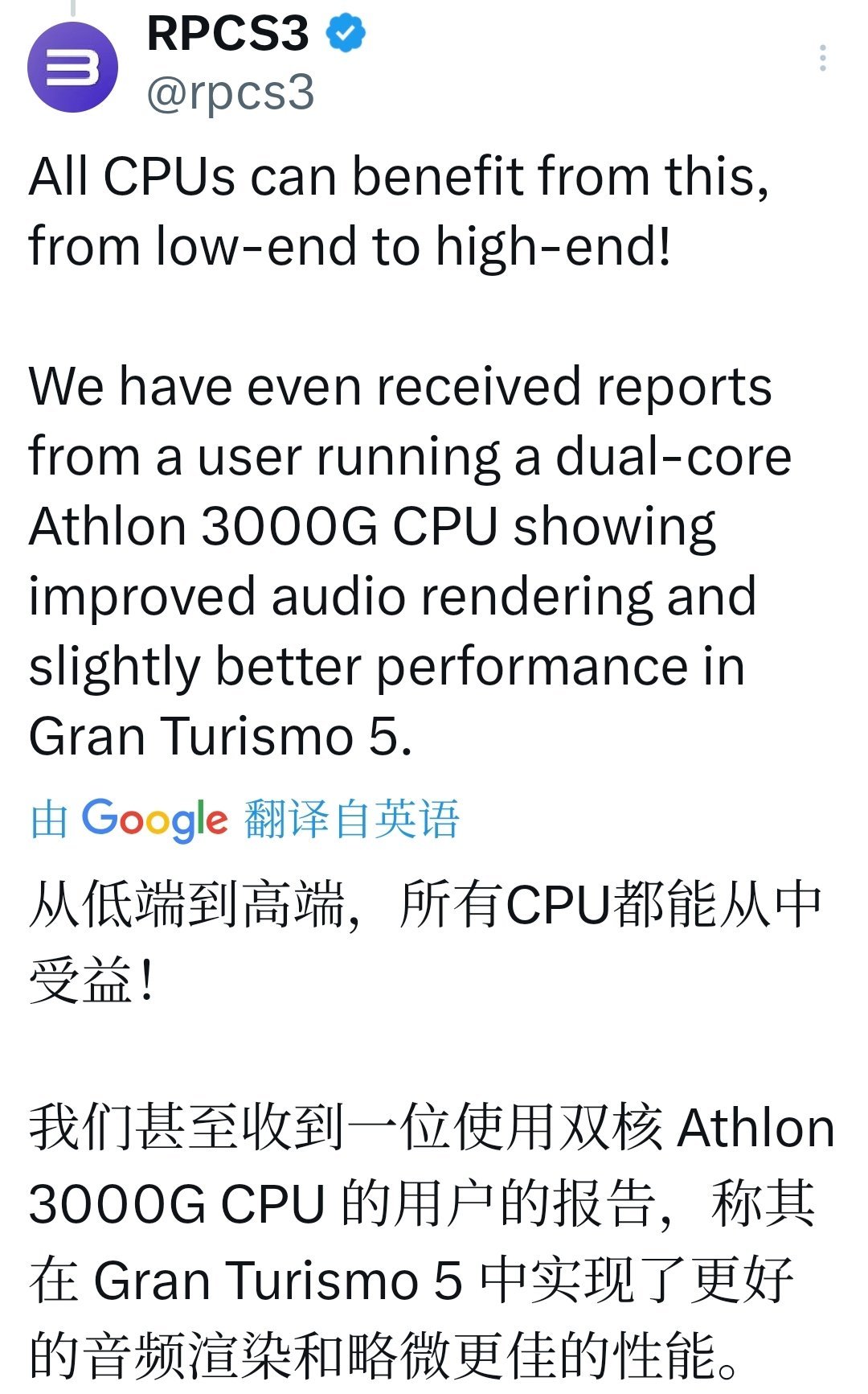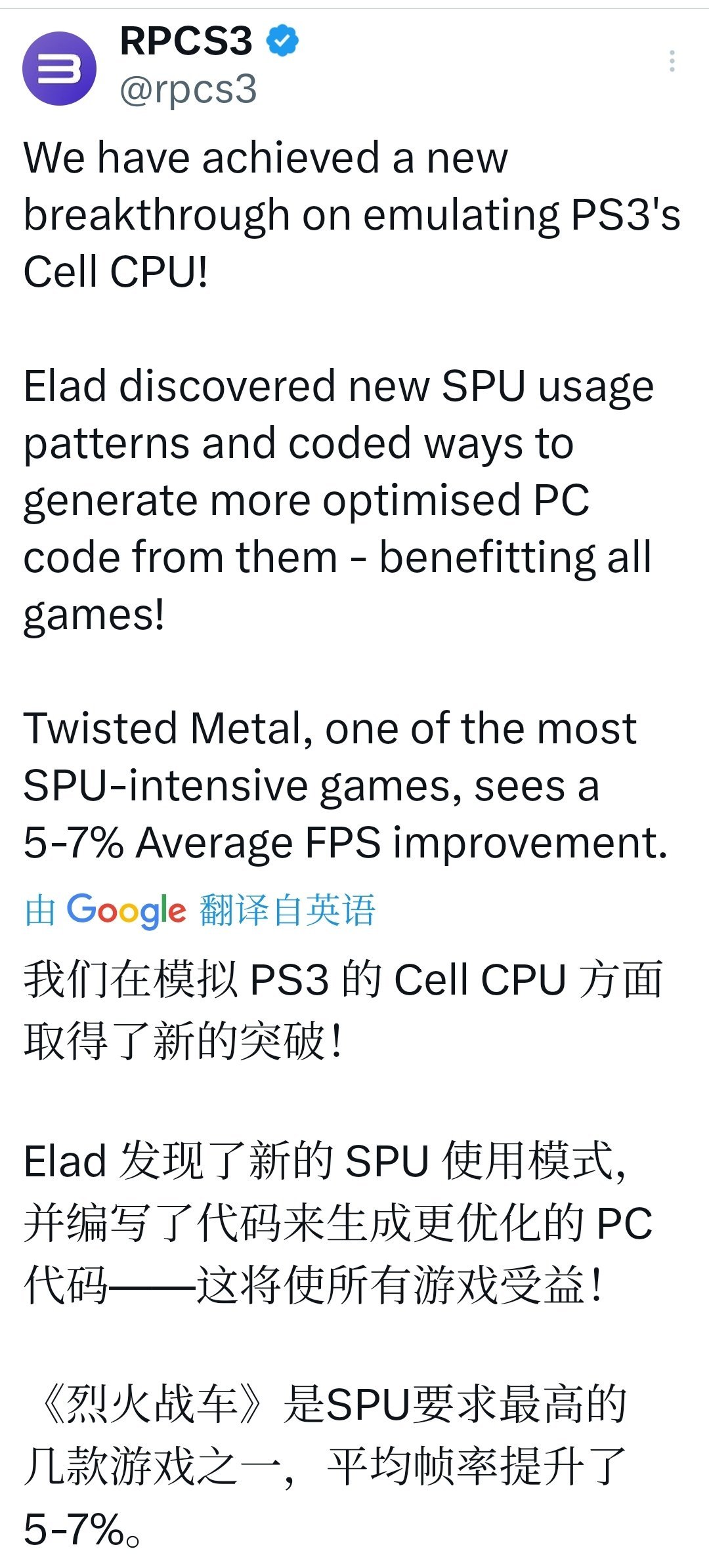 Elad 此前就多次在 SPU 优化上立功,这次是又一次“质的飞跃”。官方明确表示:“所有 CPU 都能从中受益,从低端到高端!” 这点非常重要——不像很多优化只惠及高端 Ryzen/Intel,这次的改进是普惠的。总之,这次不是针对单个游戏的 patch,而是全局底层优化——只要是依赖 SPU 的游戏,几乎所有 PS3 游戏都用,都能或多或少感受到提升。