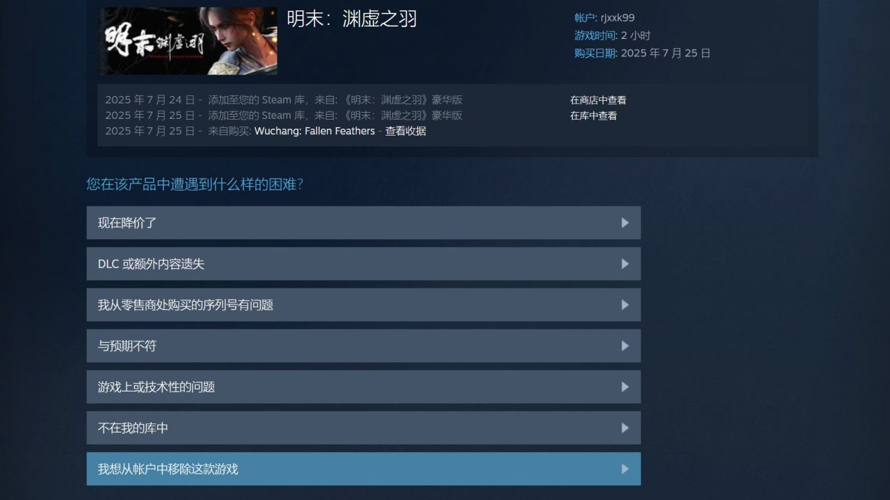 第二步,选择我想从账户中移除这款游戏