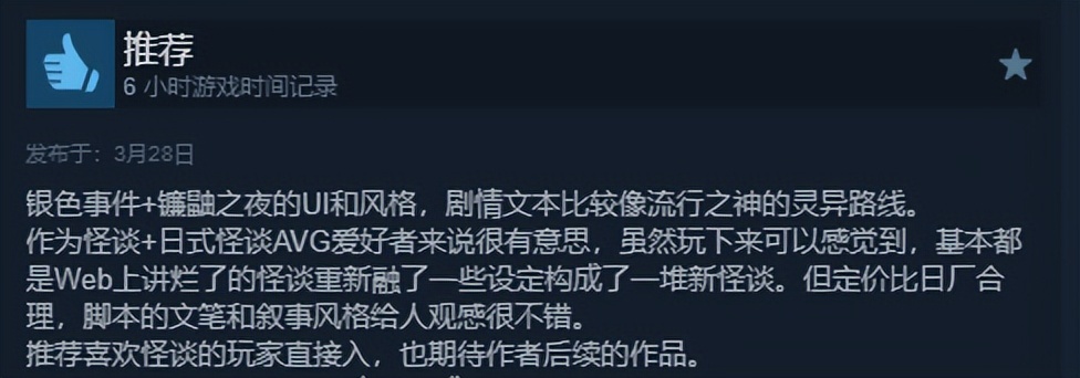 而众多评价中,“味真足”成了这款怪谈视觉小说被贴上的最显眼的标签之一。