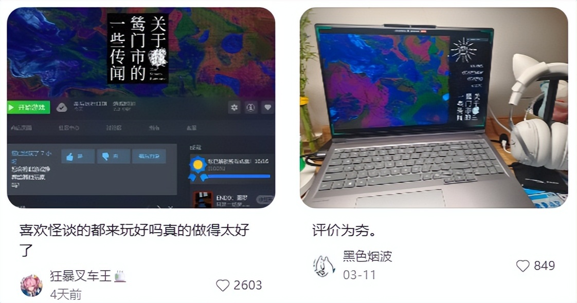 不过,喜欢怪谈的玩家对它倒是评价不错。自Demo阶段开始就不乏有玩家在社媒平台上发帖当起自来水。
